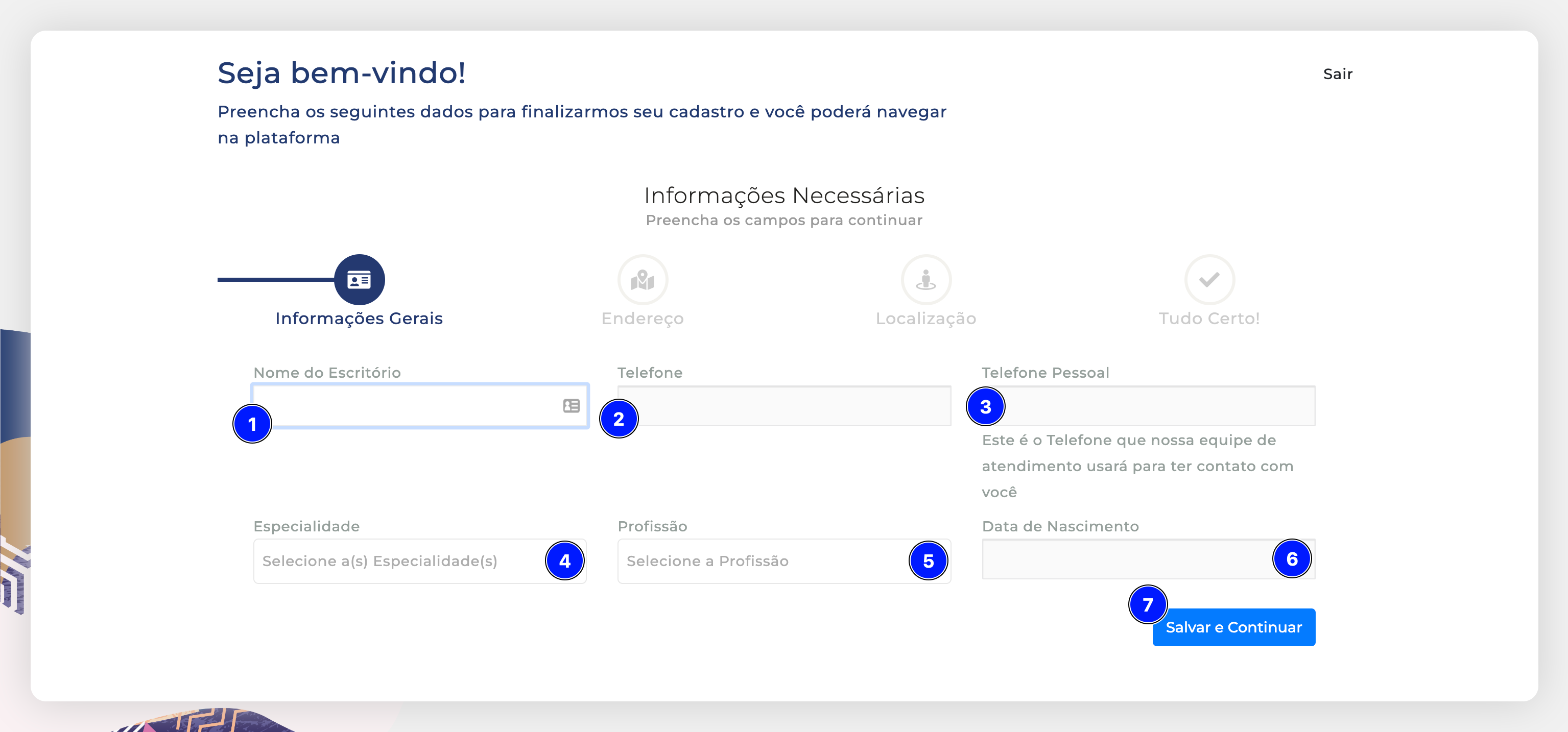Você será direcionado para o formulário final do seu cadastro, agora é hora se saber quem você é, onde atua para podermos garantir um serviço personalizado.personalizado: