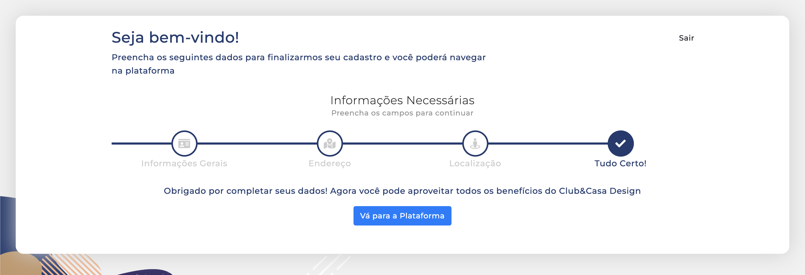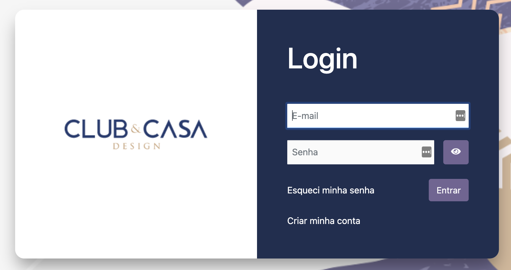 Para fazer o cadastro em nossa plataforma acesse o link: https://app.clubecasadesign.com.br/login;